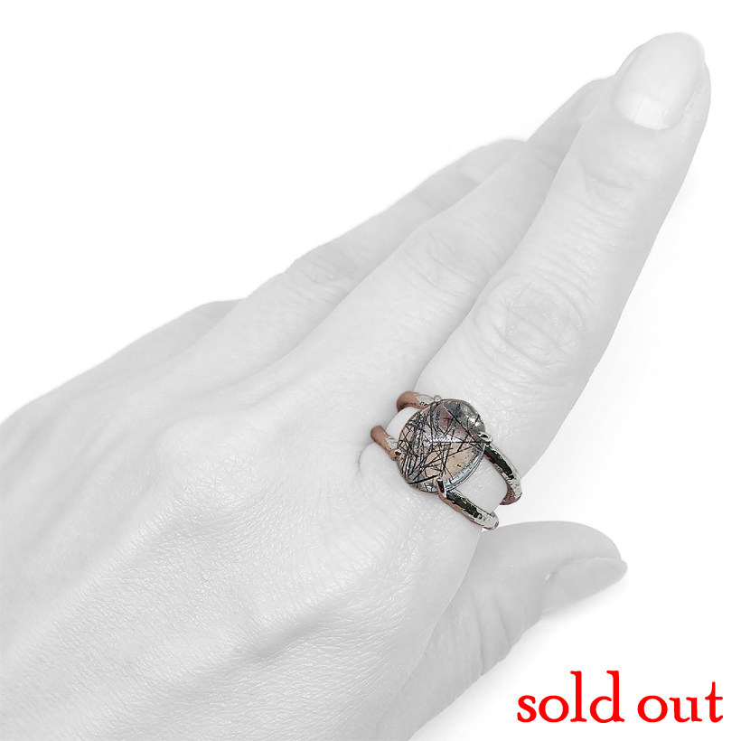 | 商品名 | ブラックトルマリンインクォーツ 二股デザイン リング |