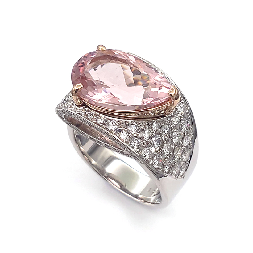 | 商品名 | ペアシェイプモルガナイト パヴェデザイン リング |