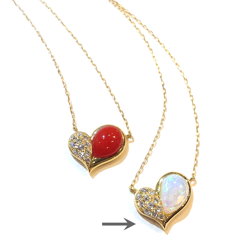 商品番号 05-74-5394-070 商品名 カボションオパール ハートデザイン ネックレス 地金 K18YG 素材 オパール/ダイヤモンド(11石 計0.16ct) 説明 片側が大きく膨らんだセクシーなハートネックレス。正面からのフォルムだけなく、ぽってりとした立体感にこだわり、カボションカットのオパールはもちろん、ダイヤモンド側もドーム状に膨らみを持たせたのがこだわりです! 素材違いはこちら→ ← 前の投稿 次の投稿 →