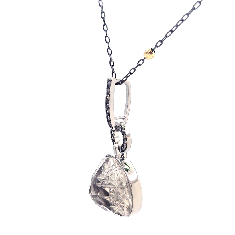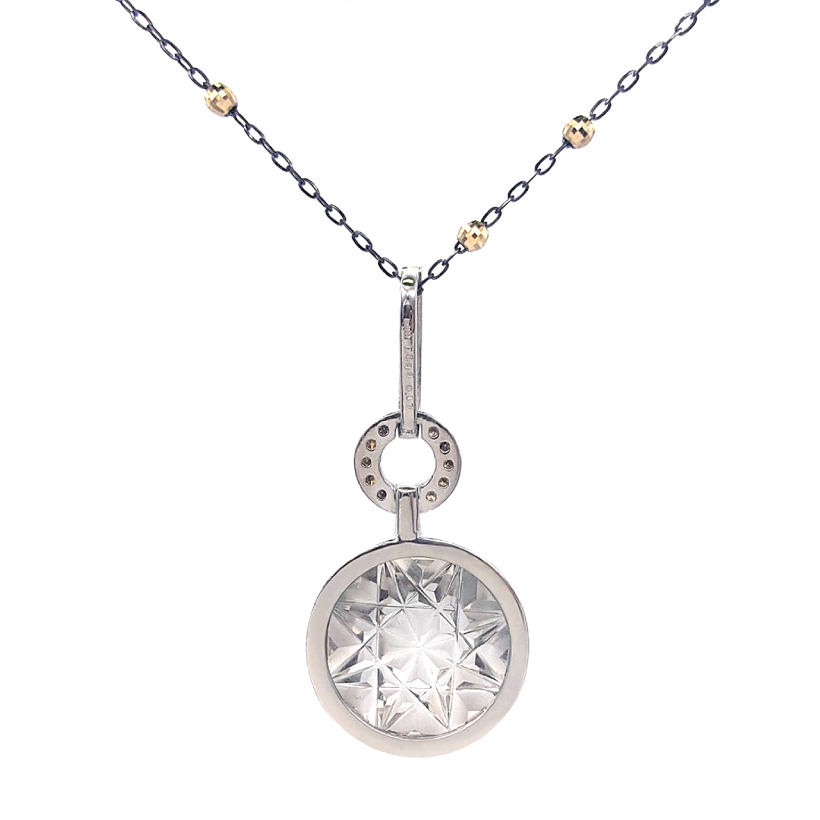| 説明 | 面カットのあるドーム状の半球体クリスタルの底面に切子細工を施した甲州貴石切子クオーツ。ドーム表面のカットに対する反射、底面の切子細工による柄の反射。様々な反射が幻想的な輝きを放ちます スモーキークオーツの色を際立たせるべく、ブラウンダイヤ&ブラックメッキでスタイリッシュに強い印象のチェーン通しデザインを組み合わせました 素材違いはこちら(甲州貴石切子クリアクリスタル)→ 素材違いはこちら(三美神カメオ)→ 素材違いはこちら(白鳥の湖カメオ)→ 素材違いはこちら(アスクレピスの杖カメオ)→ |