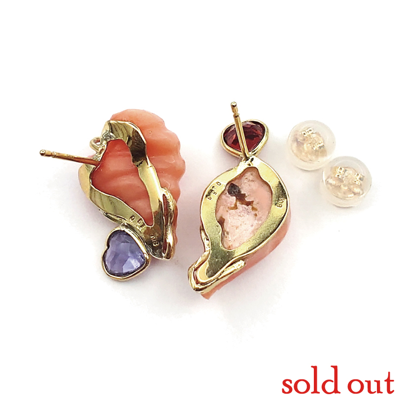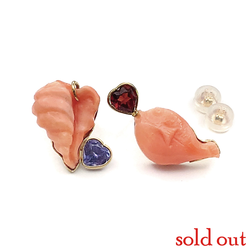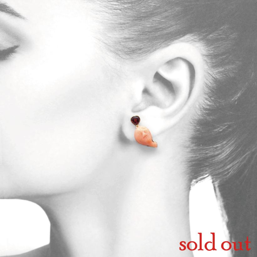 | 説明 | 笑うしかない!ファンキーピアスです! 海のモチーフ珊瑚ということで、巻貝とフグ。この発想がツボにはまってしまい思わず楽しすぎるピアスを作ってしました♡ フグの突き出たおクチからハートカットのガーネットが出たらカワイイ!となったら、巻貝の根元にハートカットの宝石をセットして、、、アシンメトリーのファンキーピアスの出来上がり!とことんふざけて、でも素材は本物、これが「大人の遊び心」の秘訣です♪ |