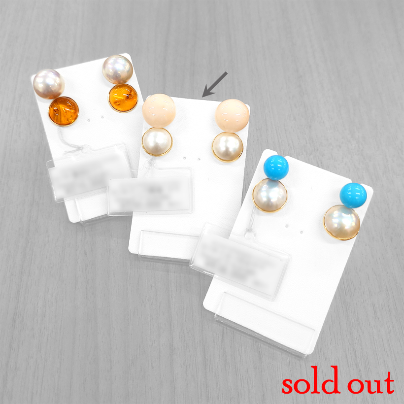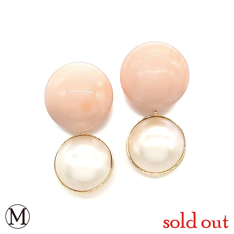 | 商品名 | ピンク珊瑚 マベパールチャーム 直結ピアス |