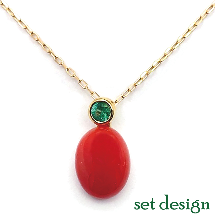 | 商品名 | カボション珊瑚 エメラルド1石デザイン 直結ピアス |