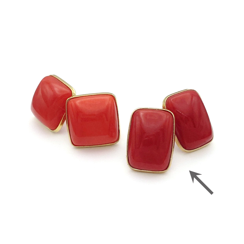 | 説明 | ちょっと珍しい長方形カットの珊瑚。ダイヤモンドのように光り輝かないからこそ逆に、嫌味なく大きなボリュームを楽しめます。シンプルな直結ピアスでそのボリュームとぽってりとしたカボションカットを楽しんでください♪ |