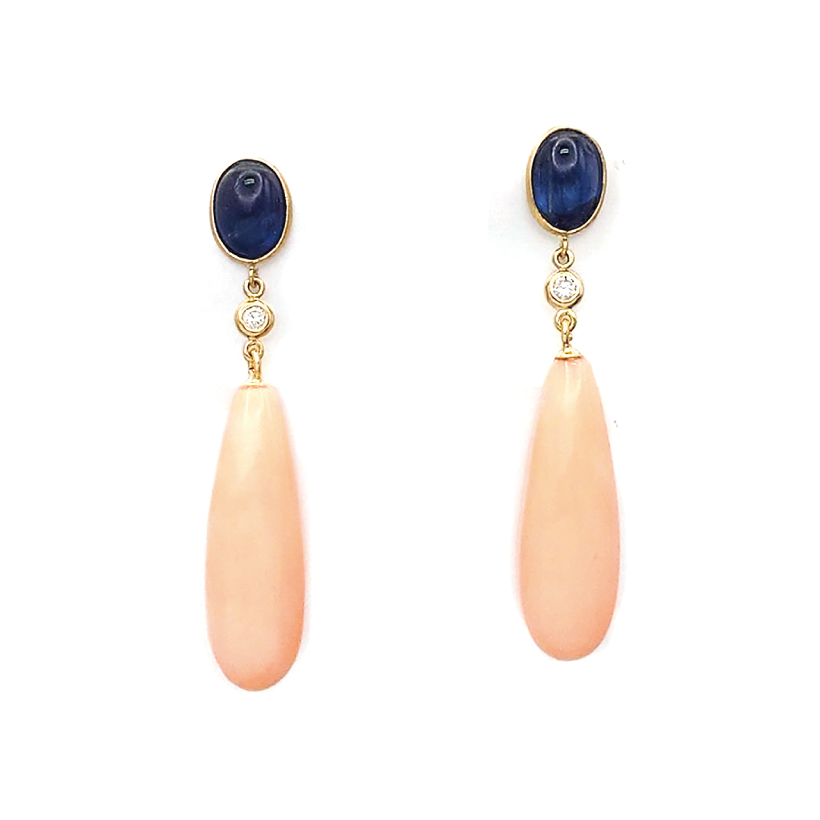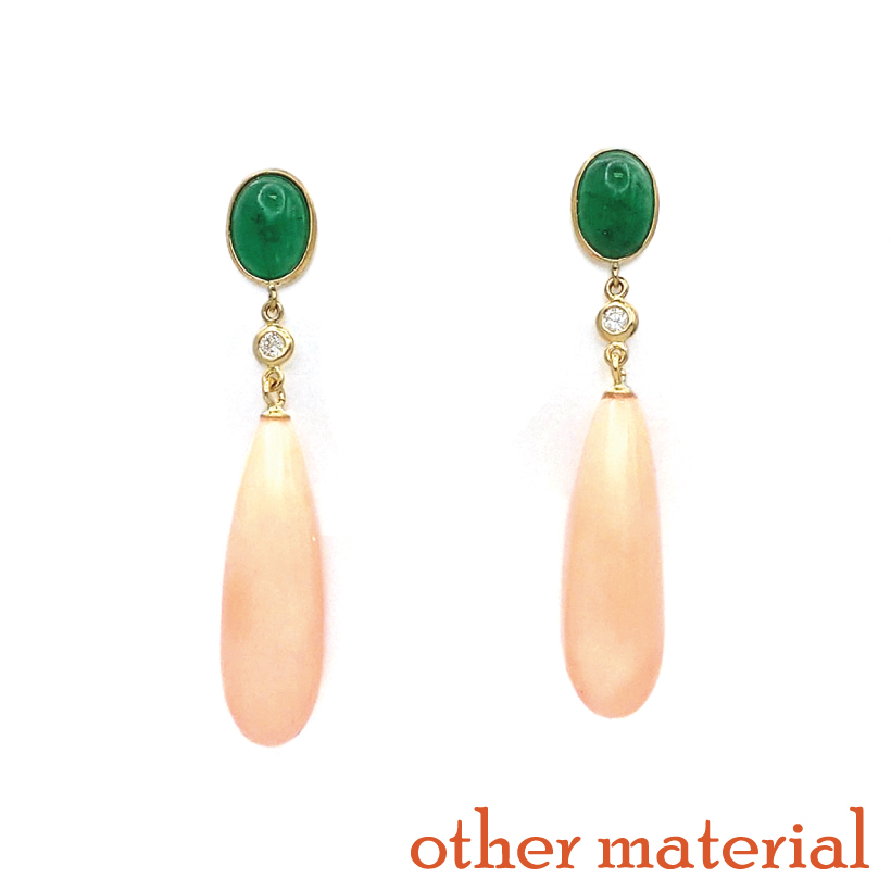 | 説明 | ドロップカットのピンク珊瑚の上に、つるんとしたカボションカットのサファイヤとダイヤでアクセントをつけたシンプルピアス。ほんのりピンクの珊瑚が優し気な印象です 素材違いはこちら→ |