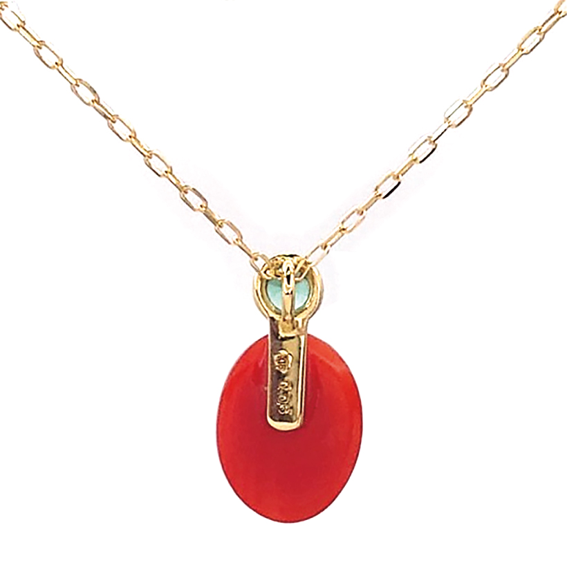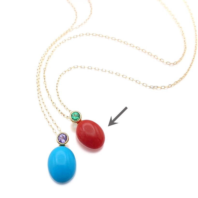 | 商品名 | カボション珊瑚 エメラルド1石デザイン ネックレス |