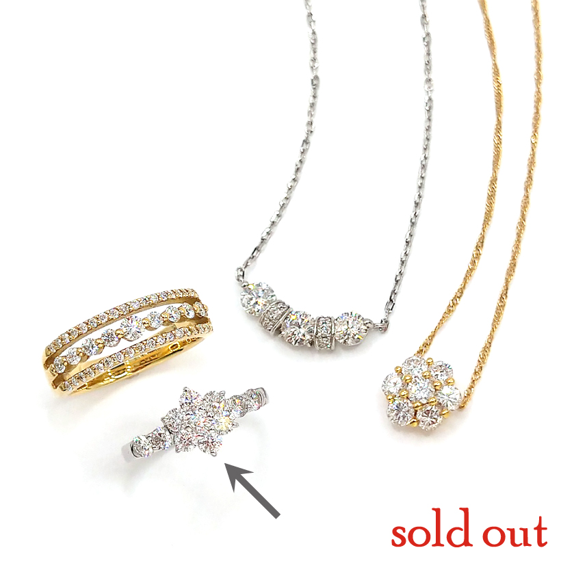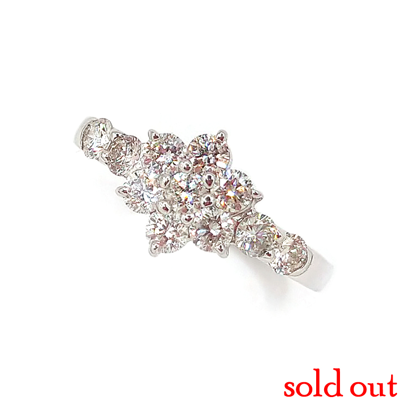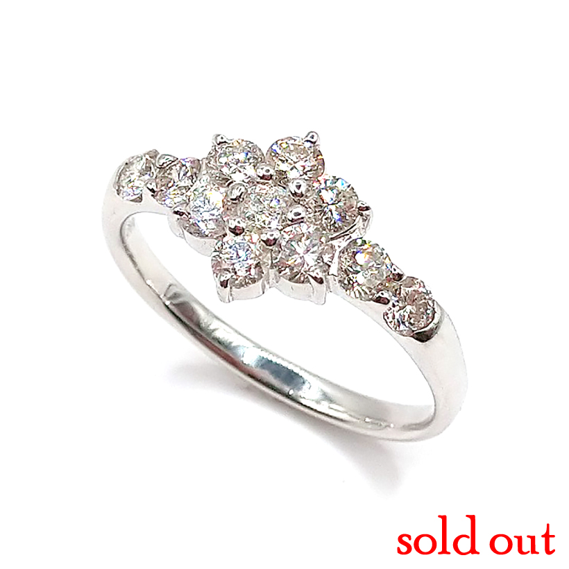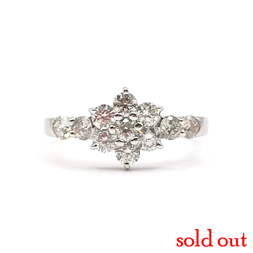 | 説明 | 6石のダイヤを並べてお花をデザインした定番リング。でっぱりの少ないフラットな作りなのでデイリー使いにぴったりです |