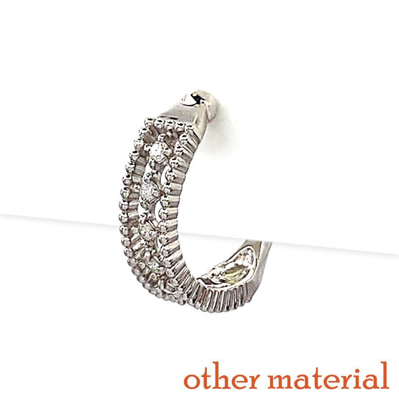 | 説明 | 耳たぶの横に着けるトレンドのイヤーカフ。耳の形は人それぞれなので、取り付けに苦労したり落ちやすかったりと、仕様選びが意外に難しい、、、そんな悩みを解消すべく、開閉&バネ式で着脱もカンタンです♪ 小さな丸珠をストレートに並べ、センターにダイヤを留めたすっきりデザイン。ドットで直線を描くことでスタイリッシュさと柔らかさを併せ持たせています。ブラウンダイヤを留める爪にはブラックメッキをしてシックな印象に仕上げました 素材違いはこちら→ |