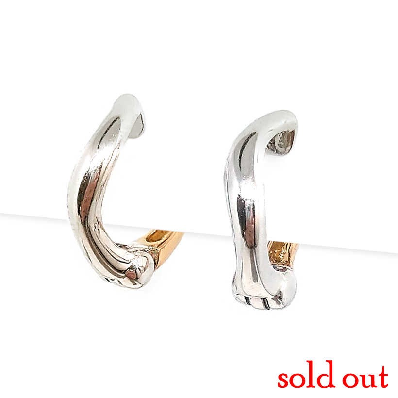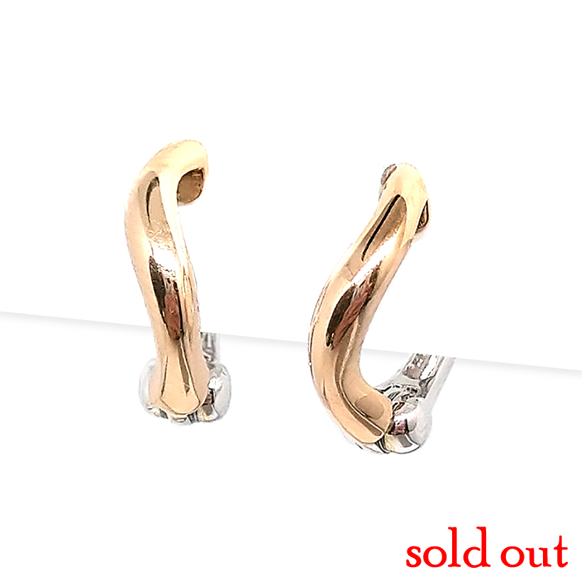 シンプルなフープにひねりを加えてオシャレ心をプラス。細いフープはチャームも通ります。コーディネートの幅が広がるピンクゴールドとホワイトゴールドのリバーシブルです