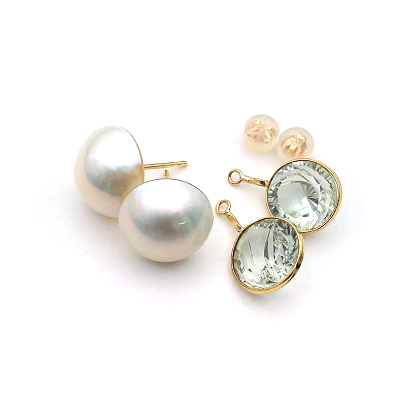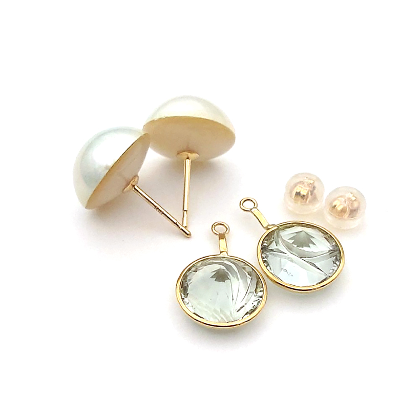 | 説明 | 耳たぶを覆う大きなマベパール。シンプルな直結ピアスだけは物足りないと、取り外し可能な甲州貴石切子水晶のチャームを付けました!マベパールだけで着用しても良し、上下にころころとしたボリュームピアスとしても良し、気分に合わせて楽しめます♪ 直線だけでなく、曲線も使ったユニークな甲州貴石切子水晶はマベパール以外の素材と組み合わせてもユニークに演出してくれるハズ! 素材違いはこちら(琥珀)→ 素材違いはこちら(カメオ)→ |