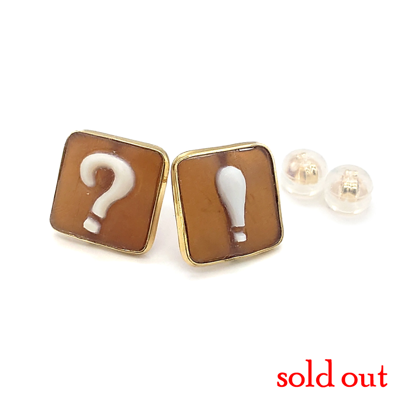 | 説明 | 作家のファンキーな発想に思わず笑ってしまう<!>カメオのピアスを見たお客様からのオーダー。 私、?!で左右違いにしたい!!! イタリアへ連絡すると、いいね~!面白いね~!と二つ返事でシェルカメオを彫ってくれました。<!>カメオにアイディアが広がり作家も楽しかったに違いありません♪ |